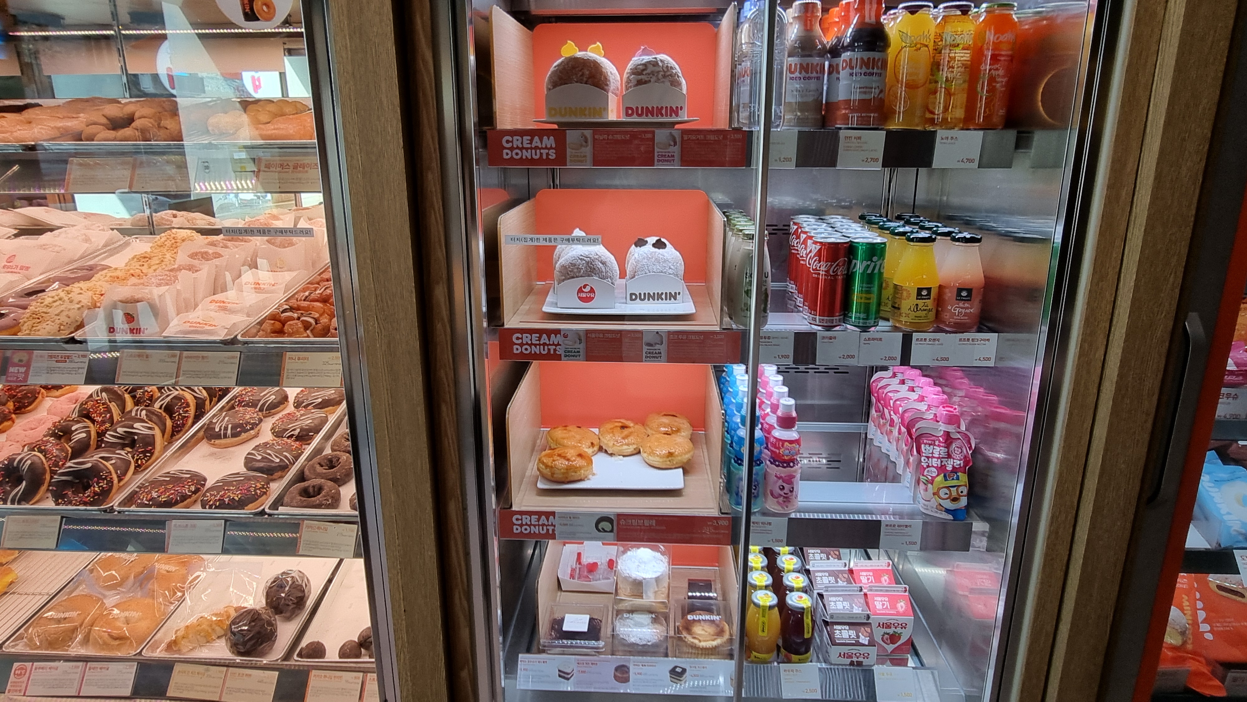 역시 던킨도너츠 특유의 알록달록한 도너츠 진열이다.