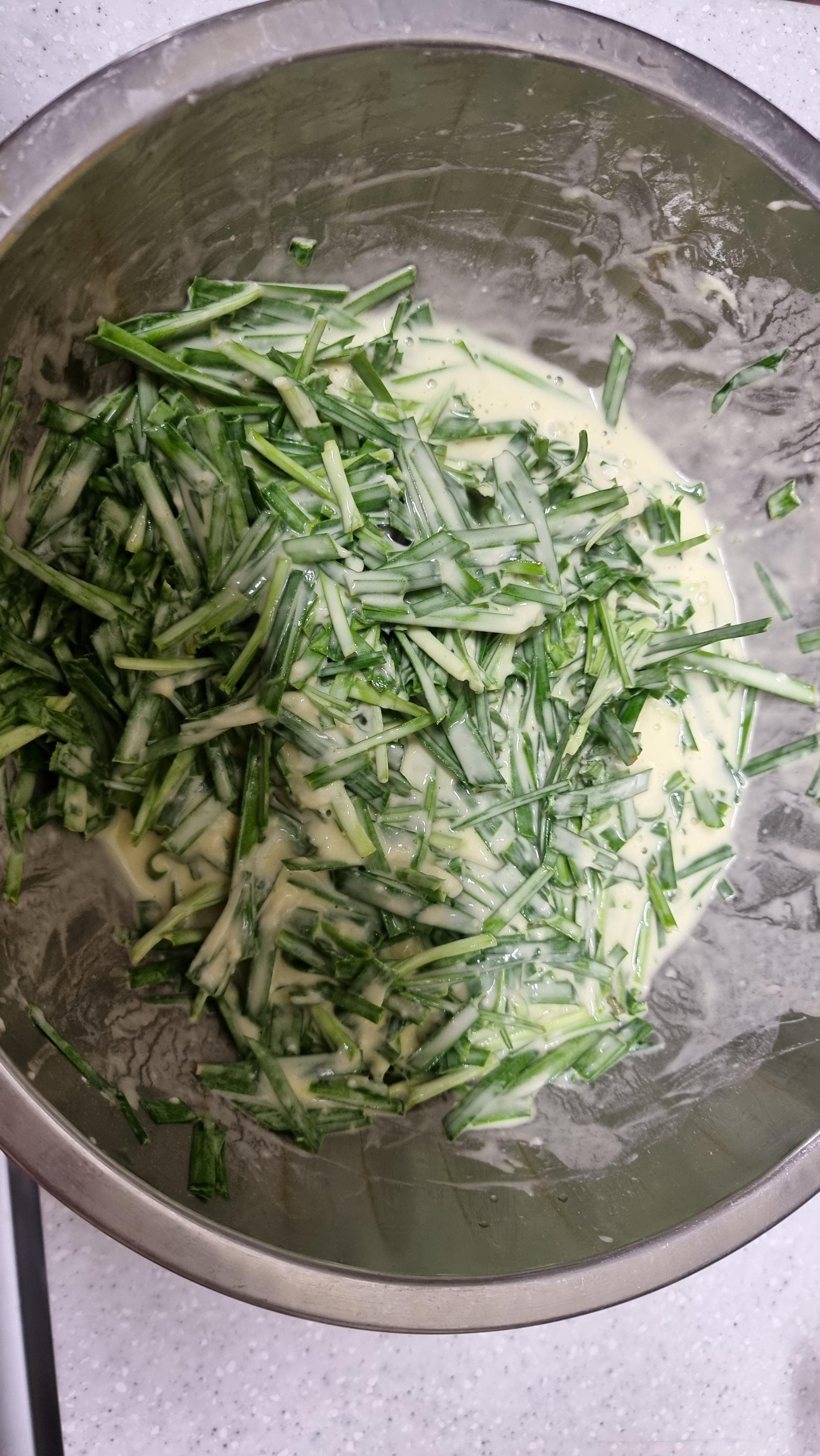 재료 : 부추, 부침가루, 식용유