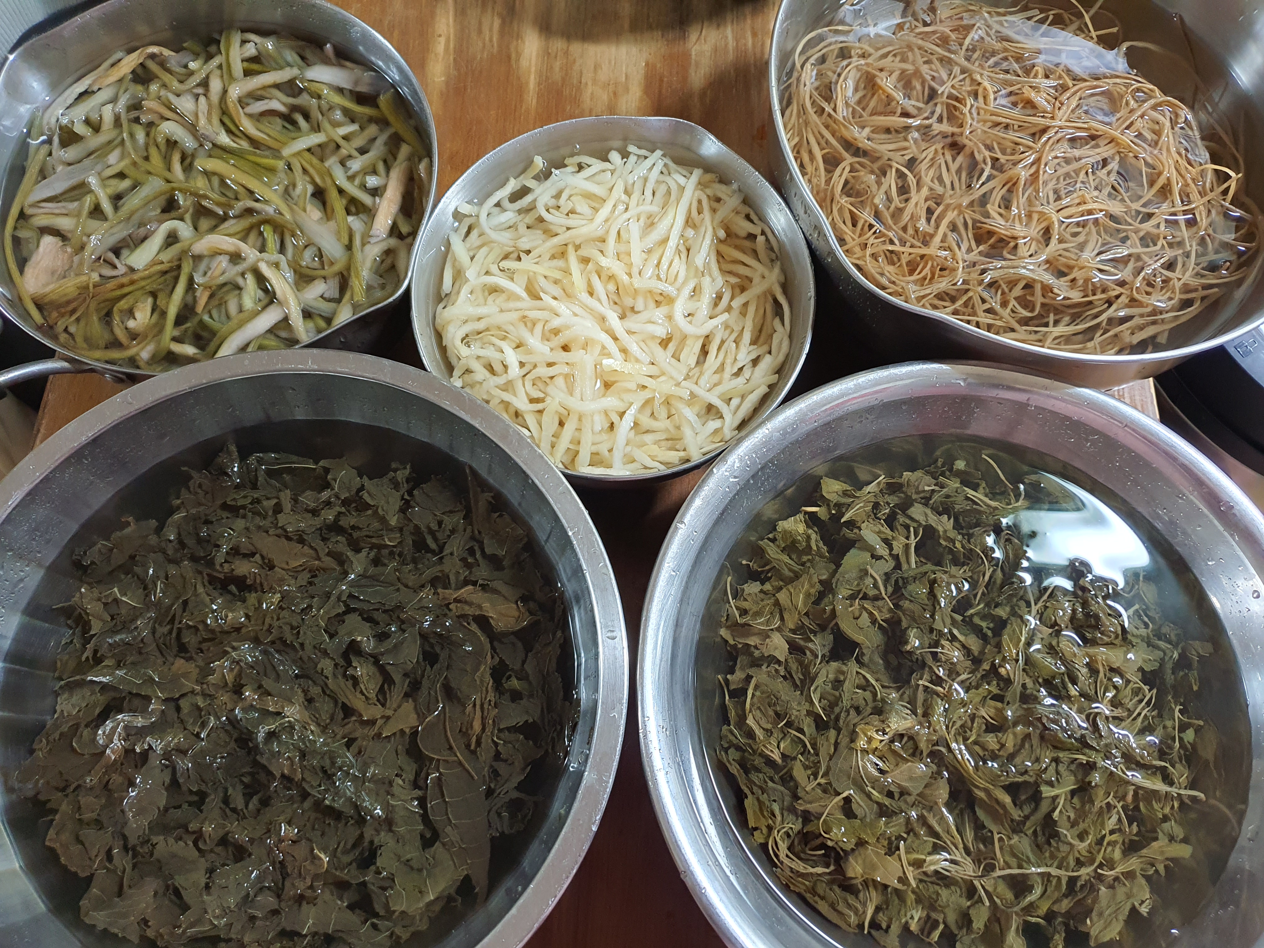 전날 나물을 담궈놨습니다.
